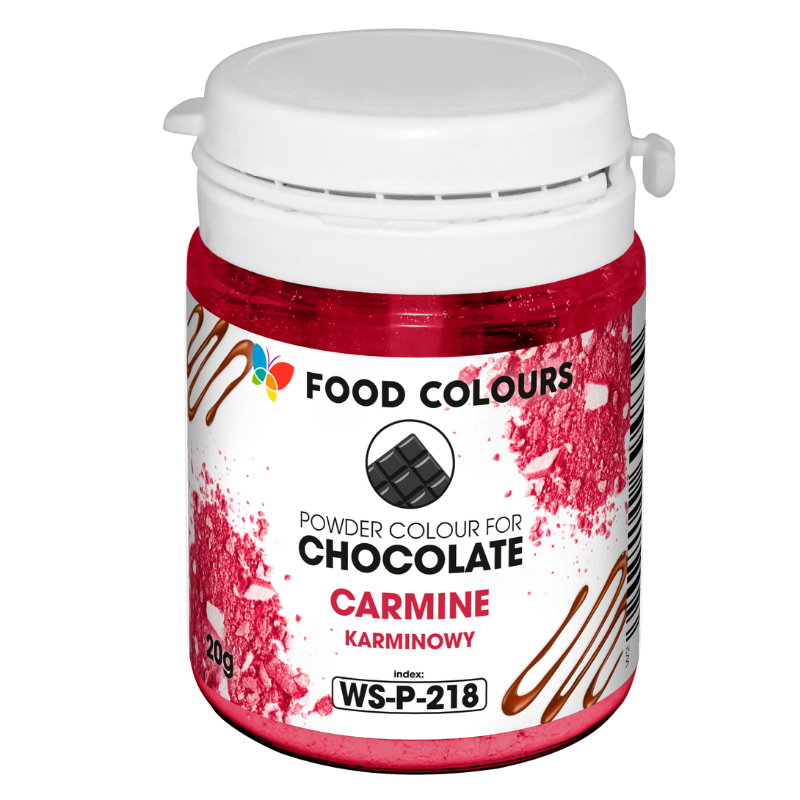 Powder Colour for Chocolate od Food Colours, to seria barwników spożywczych rozpuszczalnych w tłuszczu. Przeznaczonych do barwienia białej czekolady i mas cukierniczych o wysokiej zawartości tłuszczu. Skoncentrowana forma barwników w postaci proszku. Żywe kolory w formie czystych pigmentów o dużej mocy barwienia i wysokiej wydajności. Barwniki nie wpływają na proces temperowania czekolady i nie zaburzają procesu. Najlepsze odwzorowanie kolorów uzyskuje się podczas barwienia białej czekolady, tłuszczu (masła) kakaowego oraz kremu maślanego. Barwniki można mieszać także z mleczną i ciemną czekoladą. Doskonale sprawdzają się podczas produkcji kolorowych pralin i czekoladek, a także tworzenia dekoracji czekoladowych. Niezastąpione podczas tworzenia kolorowych tynków i kremów do dekoracji tortów. Barwniki do czekolady przeznaczone są zarówno do użytku profesjonalnego jak i na użytek domowy. Wytwarzane z bezpiecznych do spożycia pigmentów, które podlegają maksymalnemu dozowaniu.