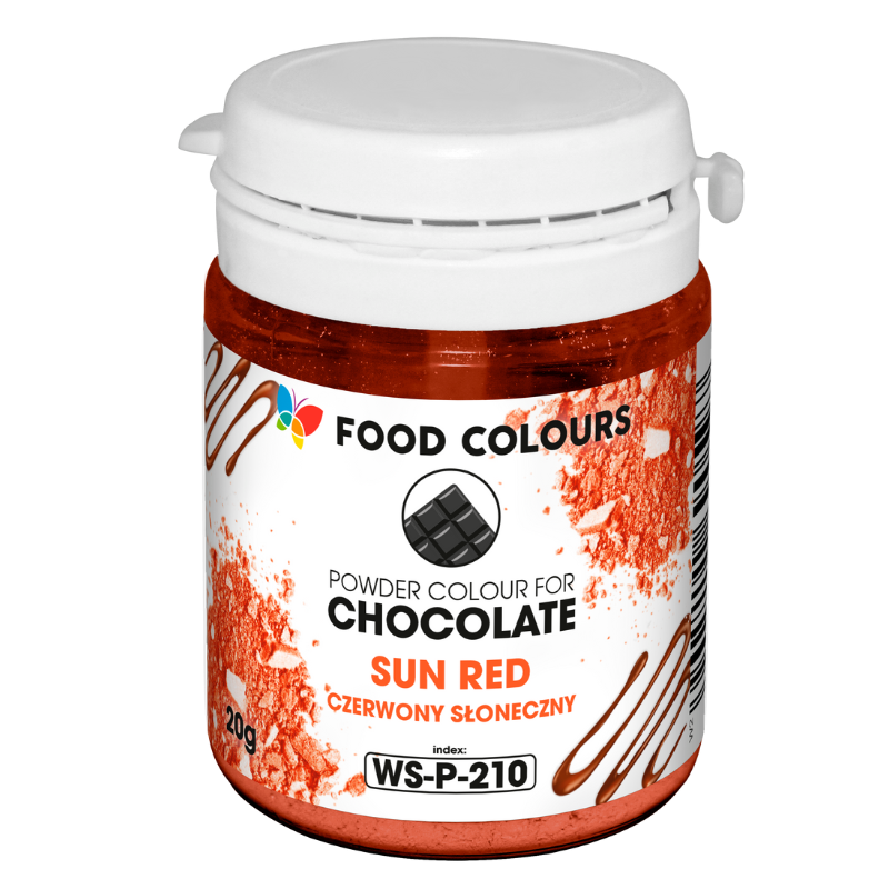 Powder Colour for Chocolate od Food Colours, to seria barwników spożywczych rozpuszczalnych w tłuszczu. Przeznaczonych do barwienia białej czekolady i mas cukierniczych o wysokiej zawartości tłuszczu. Skoncentrowana forma barwników w postaci proszku. Żywe kolory w formie czystych pigmentów o dużej mocy barwienia i wysokiej wydajności. Barwniki nie wpływają na proces temperowania czekolady i nie zaburzają procesu. Najlepsze odwzorowanie kolorów uzyskuje się podczas barwienia białej czekolady, tłuszczu (masła) kakaowego oraz kremu maślanego. Barwniki można mieszać także z mleczną i ciemną czekoladą. Doskonale sprawdzają się podczas produkcji kolorowych pralin i czekoladek, a także tworzenia dekoracji czekoladowych. Niezastąpione podczas tworzenia kolorowych tynków i kremów do dekoracji tortów. Barwniki do czekolady przeznaczone są zarówno do użytku profesjonalnego jak i na użytek domowy. Wytwarzane z bezpiecznych do spożycia pigmentów, które podlegają maksymalnemu dozowaniu.