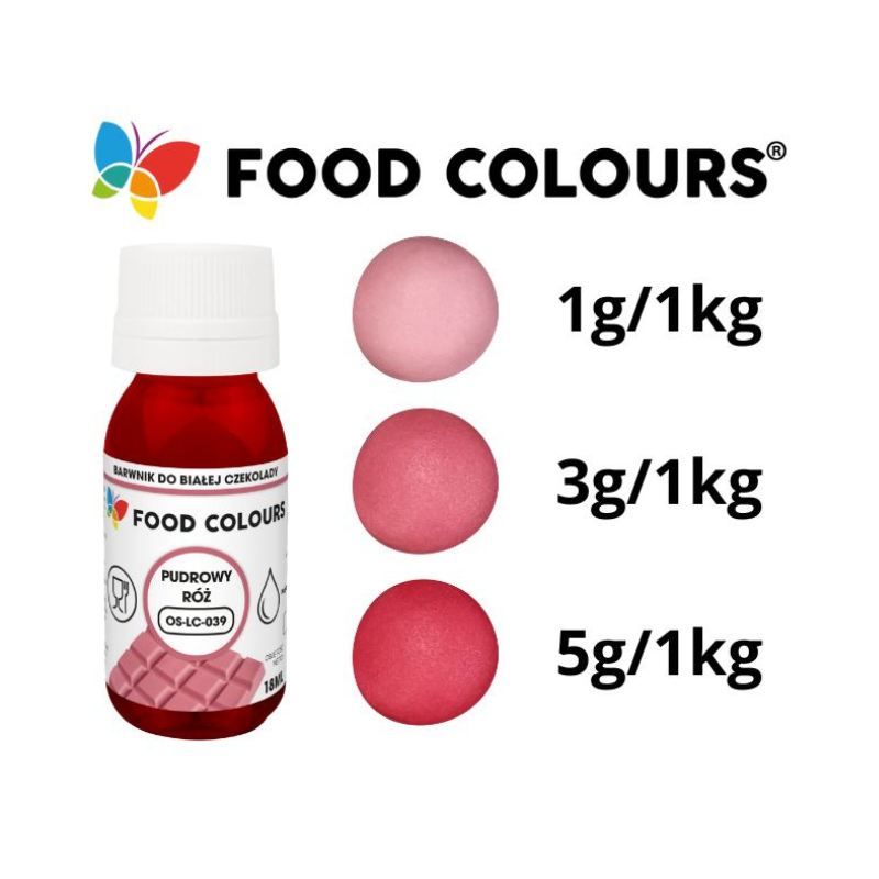Warunki przechowywania: barwniki na bazie oleju roślinnego należy przechowywać w temperaturze od 18°C do 25°C; chronić przed bezpośrednim działaniem wilgoci oraz światła słonecznego; po każdym użyciu należy dokładnie zamknąć opakowanie; termin przydatności barwników spożywczych to 12 miesięcy od daty produkcji (w zamkniętym fabrycznie opakowaniu).