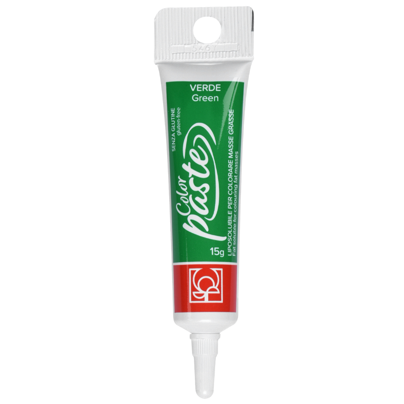 Color Paste od Modecor, to seria barwników spożywczych o konsystencji pasty. Barwniki cukiernicze na bazie tłuszczu roślinnego, w tym tłuszczu kakaowego oraz olejów roślinnych. Seria kolorowych past przeznaczonych do barwienia czekolady oraz tłustych mas i kremów cukierniczych. Paleta klasycznych kolorów, łatwych do dozowania i rozprowadzania zapakowanych w wygodne tubki z nakrętką. Barwniki doskonale sprawdzą się do barwienia pralin czekoladowych oraz dekoracji z czekolady. Barwniki na bazie tłuszczu nie zaburzają procesu temperowania czekolady. Barwniki spożywcze rozpuszczalne w tłuszczu, idealne do barwienia kremu maślanego oraz ganache, a także innych kremów i mas o tłustej konsystencji. Barwniki spożywcze przeznaczone są do dekoracji i barwienia wyrobów cukierniczych i żywności. Najlepsze odwzorowanie koloru barwnika uzyskuje się po zmieszaniu z białą czekoladą oraz jasnymi kremami.