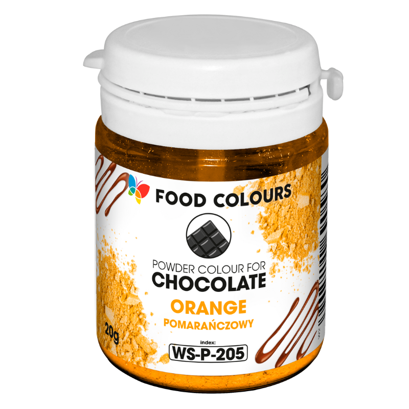 Powder Colour for Chocolate od Food Colours, to seria barwników spożywczych rozpuszczalnych w tłuszczu. Przeznaczonych do barwienia białej czekolady i mas cukierniczych o wysokiej zawartości tłuszczu. Skoncentrowana forma barwników w postaci proszku. Żywe kolory w formie czystych pigmentów o dużej mocy barwienia i wysokiej wydajności. Barwniki nie wpływają na proces temperowania czekolady i nie zaburzają procesu. Najlepsze odwzorowanie kolorów uzyskuje się podczas barwienia białej czekolady, tłuszczu (masła) kakaowego oraz kremu maślanego. Barwniki można mieszać także z mleczną i ciemną czekoladą. Doskonale sprawdzają się podczas produkcji kolorowych pralin i czekoladek, a także tworzenia dekoracji czekoladowych. Niezastąpione podczas tworzenia kolorowych tynków i kremów do dekoracji tortów. Barwniki do czekolady przeznaczone są zarówno do użytku profesjonalnego jak i na użytek domowy. Wytwarzane z bezpiecznych do spożycia pigmentów, które podlegają maksymalnemu dozowaniu.