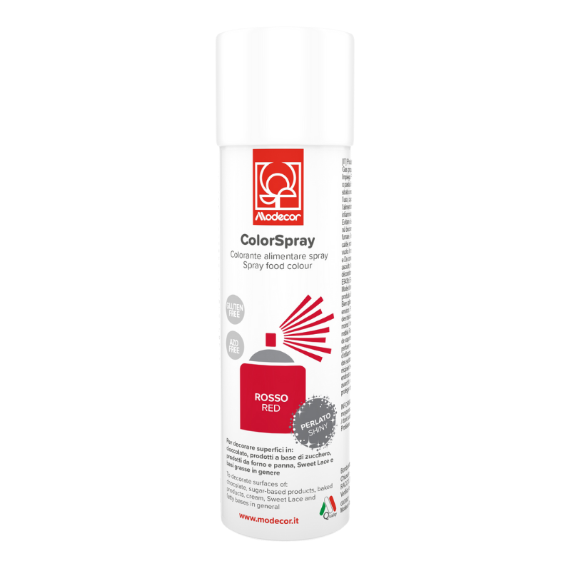 Color Spray Perlato - to seria błyszczących barwników umieszczonych w pojemnikach pod ciśnieniem, które pozwalają na precyzyjne pokrywanie perłowymi kolorami powierzchni wyrobów cukierniczych. Barwniki spożywcze w sprayu doskonale sprawdzą się podczas dekorowania powierzchni czekolady, produktów na bazie cukru oraz wyrobów piekarniczych (również tych pokrytych kremem śmietanowym). Forma barwników pozwala na precyzyjne pokrywanie dekorowanych wyrobów równomierną warstwą koloru. Ponadto barwniki są proste w użyciu, należy jedynie pamiętać o ich dokładnym wstrząśnięciu przed nałożeniem oraz spryskiwaniu powierzchni z odpowiedniej odległości (minimum 20 cm). Barwniki są całkowicie bezpieczne do spożycia - należy jednak przestrzegać wytycznych co do ich dozowania.