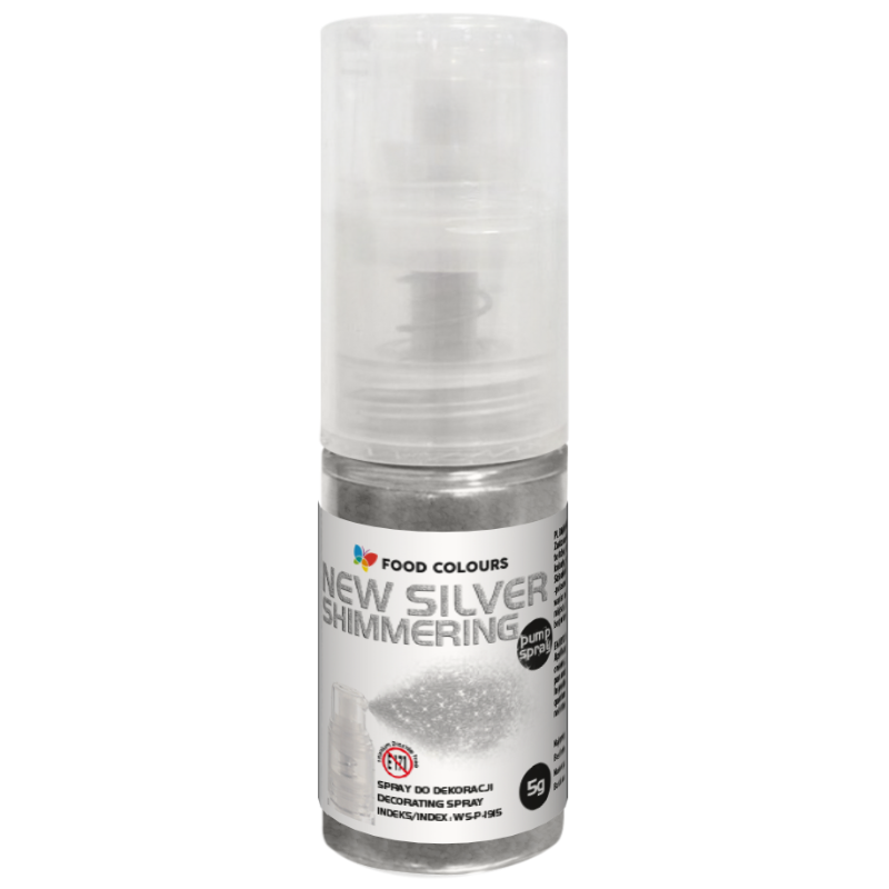 op. 5 g PUMP SPRAY SHIMMERING SILVER WS-P-1915 FOOD COLOURS srebrny pyłek do dekoracji cukierniczych