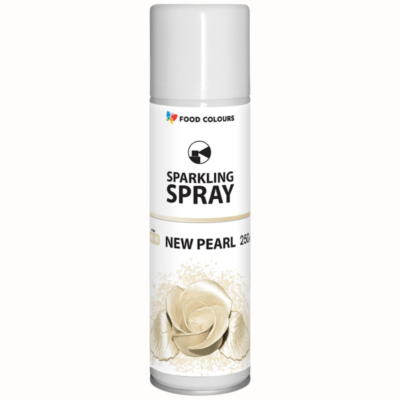 Sparkling Spray od Food Colours, to seria błyszczących barwników spożywczych umieszczonych w pojemnikach pod ciśnieniem, które pozwalają na precyzyjne pokrywanie kolorami powierzchni wyrobów cukierniczych. Perłowy efekt bez dodatku dwutlenku tytanu! Barwniki spożywcze w sprayu doskonale sprawdzą się podczas dekorowania powierzchni czekolady, produktów na bazie cukru oraz wyrobów piekarniczych, również tych pokrytych kremem śmietanowym. Forma barwników pozwala na precyzyjne pokrywanie dekorowanych wyrobów równomierną warstwą koloru. Ponadto barwniki są proste w użyciu, należy jedynie pamiętać o ich dokładnym wstrząśnięciu przed nałożeniem oraz spryskiwaniu powierzchni z odpowiedniej odległości, minimum 15-20 cm. Barwniki są całkowicie bezpieczne do spożycia, należy jednak przestrzegać wytycznych co do ich dozowania.