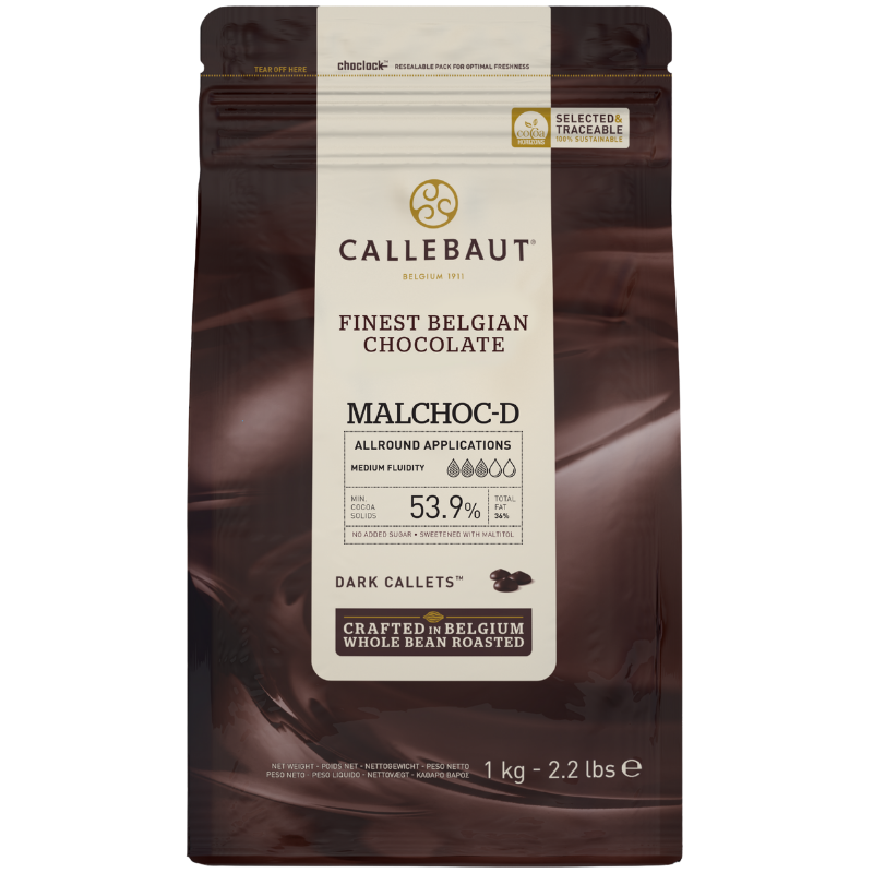 op. 1 kg Ciemna czekolada z maltitolem o zaw. 53.9% kakao - RECIPE N°MALCHOC-D Callebaut - czekolada bez dodatku cukru