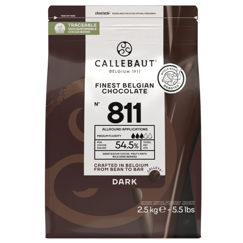 Uniwersalna ciemna czekolada wytwarzana z mieszanki wyselekcjonowanych ziaren kakaowych z trzech różnych krajów - Wybrzeże Kości Słoniowej, Ghana, Ekwador - dla uzyskania idealnie harmonijnego, bogatego smaku. Charakteryzuje się zrównoważonym, gładkim smakiem, bogatym w kakao z wyczuwanymi nutami owocowymi. Uniwersalna płynność czekolady sprawia, że doskonale sprawdza się w różnorodnych zastosowaniach (jest jedną z najczęściej wybieranych czekolad przez szefów kuchni i mistrzów cukiernictwa). Receptura numer 811 - to ciemna belgijska czekolada o minimalnej zawartości kakao 54.5% i statusie kuwertury (zawartość masła kakaowego - 36.6%).
