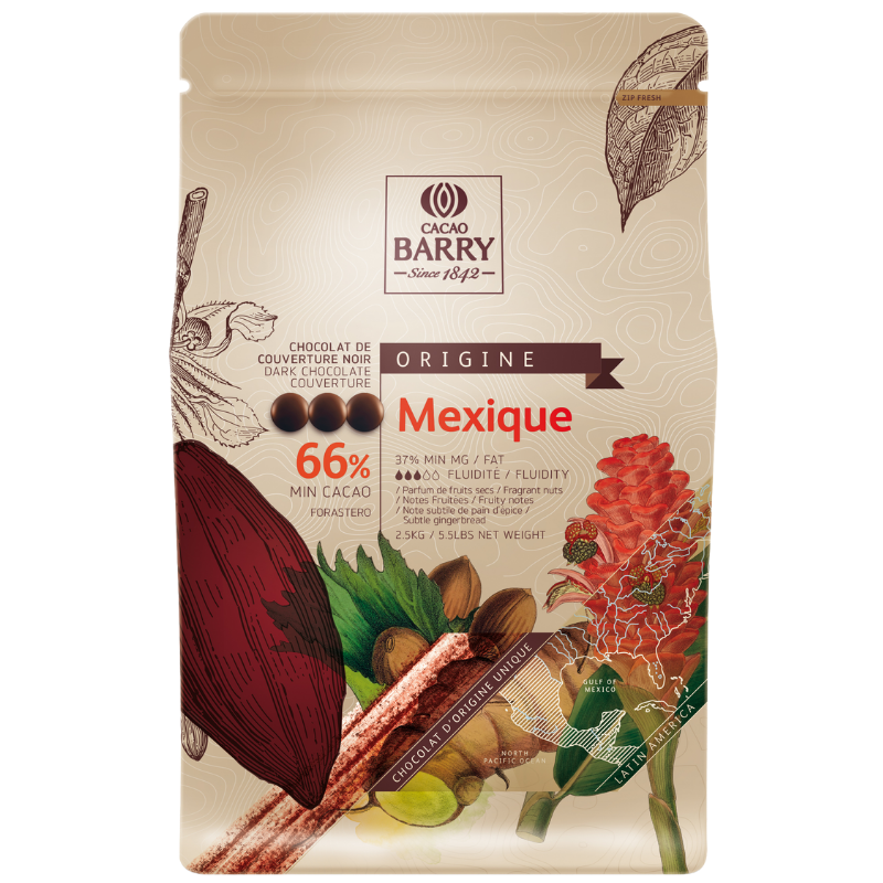 op. 2.5 kg Ciemna czekolada o zaw. 66% kakao - Mexique Cacao Barry - czekolada w kaletkach