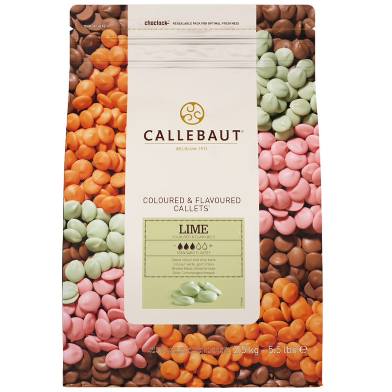 LEMON CALLETS™ - to kaletki wykonane na bazie białej belgijskiej czekolady z aromatem cytrynowym o wyjątkowej barwie świeżej, jasnej zieleni. Czekolada posiada wyjątkowy profil smakowy, który łączy w sobie śmietankowo-karmelową słodycz białej czekolady z lekko kwaśnym smakiem cytryny. Przeznaczona jest przede wszystkim do nadawania pięknej i nietuzinkowej barwy różnorodnym słodkim kreacjom. Czekolada cytrynowa zachowuje się jak klasyczna biała czekolada - podczas topienia, temperowania czy schładzania. Uniwersalna płynność (3/5) sprawia, że czekolada doskonale sprawdzi się w różnorodnych zastosowaniach - do formowania, oblewania, aromatyzowania i barwienia (musów i kremów) oraz tworzenia dekoracji. Masa cukiernicza na bazie tłuszczu kakaowego z aromatem i barwnikami (AZO FREE).