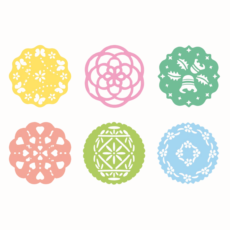 Bardzo praktyczny zestaw szablonów do ozdabiania okazjonalnych wypieków i deserów. Sześć wzorów o tematyce związanej z najważniejszymi świętami, takimi jak Wielkanoc, Boże Narodzenie, Walentynki, a także urodziny czy początek wiosny. W zestawie znajdują się wzory, które doskonale sprawdzą się do dekoracji domowych tortów. Szablony przeznaczone są do ozdabiania wyrobów przy użyciu cukru pudru, kakao i cynamonu. Zostały stworzone z myślą o dekorowaniu powierzchni wyrobów przy użyciu sypkich produktów. Dekorować można również innymi produktami sypkimi, na przykład suszonym proszkiem owocowym z pokruszonych liofilizowanych owoców. Do dekoracji można użyć również suszonych kwiatów jadalnych, zwłaszcza tych o drobnych płatkach. Wyjątkowy efekt dekoracyjny można uzyskać stosując błyszczące pyłki oraz barwniki spożywcze w proszku. Szablony sprawdzą się również do dekoracji powierzchni z zastosowaniem kolorowych sprayów spożywczych. Możliwości wykorzystania szablonów do dekoracji zależą głównie od Twojej kreatywności i pomysłowości!