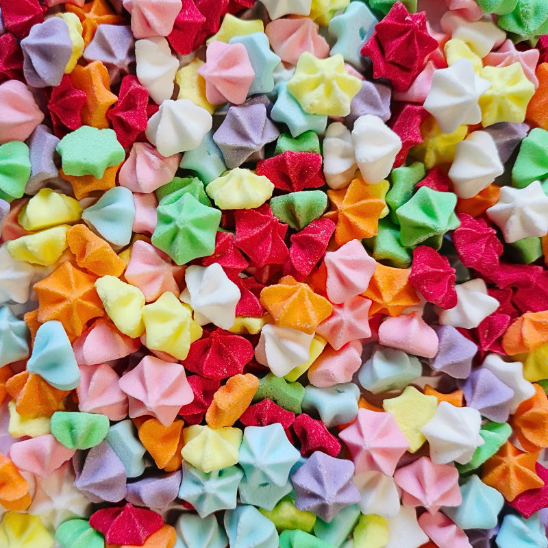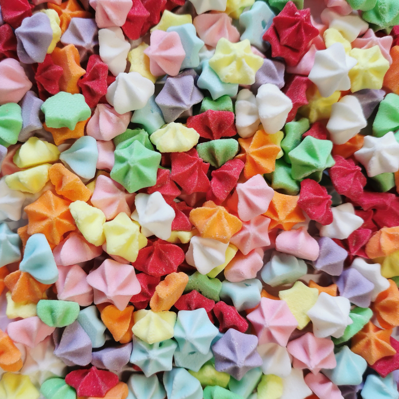 Idealnym rozwiązaniem będą kolorowe beziki w kształcie gwiazdek. Zapewnią wyjątkowy efekt przy minimalnym nakładzie pracy i ucieszą każde dziecko. Beziki dekoracyjne charakteryzują się delikatnym, słodkim smakiem i chrupiąca konsystencją. Doskonale sprawdzą się do dekoracji tortów oraz małych wypieków i deserów z kremami. Małe beziki, to wspaniały dodatek do napojów kawowych i gorącej czekolady z bitą śmietaną. Zaleca się dekorowanie słodkich wyrobów na maksymalnie 30 minut przed ich podaniem. Zbyt długi kontakt dekoracji cukrowych z masą może doprowadzić do rozmięknięcia bezików, a tym samym zniszczenia dekoracji.
