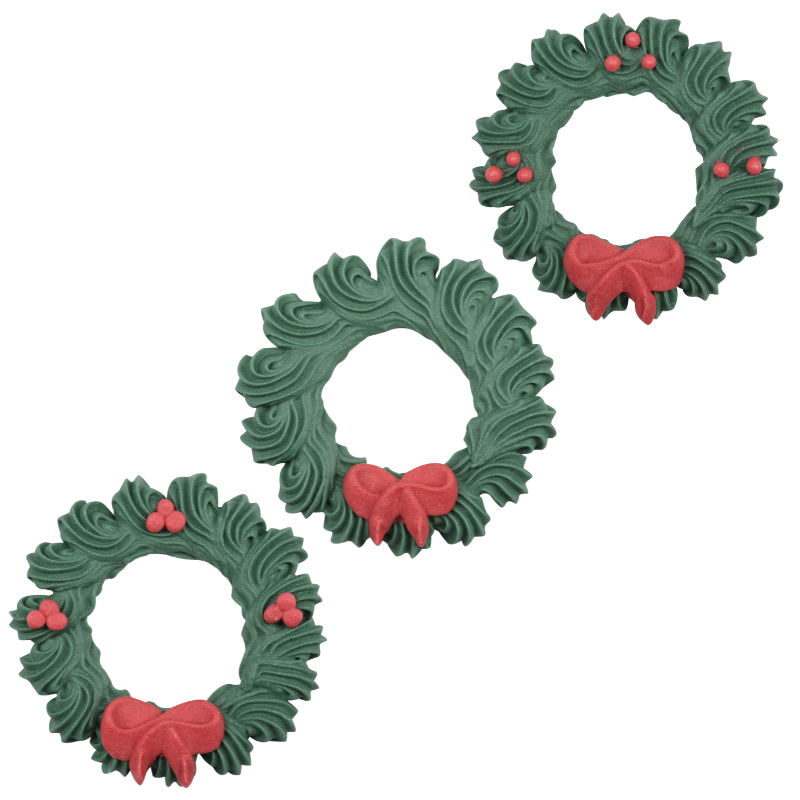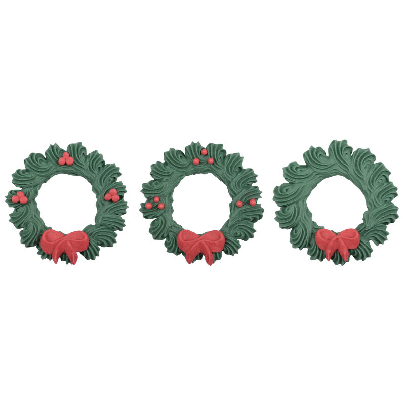 Wieniec Adwentowy w trzech wzorach. Zestaw dekoracji cukrowych na święta Bożego Narodzenia. Wypukłe dekoracje do ozdabiania świątecznych wypieków i deserów.