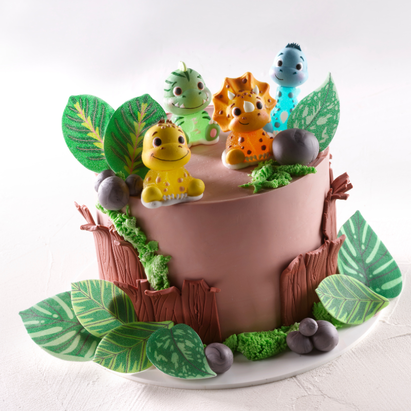 Kolorowa dekoracja w kształcie dinozaurów wykonana z wysokiej jakości barwionej białej czekolady. Idealny sposób na szybką i efektowną dekorację Twoich słodkich wyrobów. Doskonale sprawdzą się zarówno w profesjonalnej jak i domowej pracowni cukierniczej.