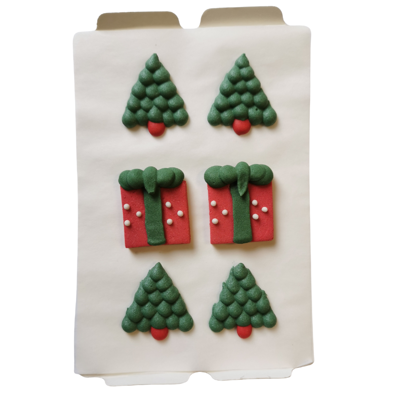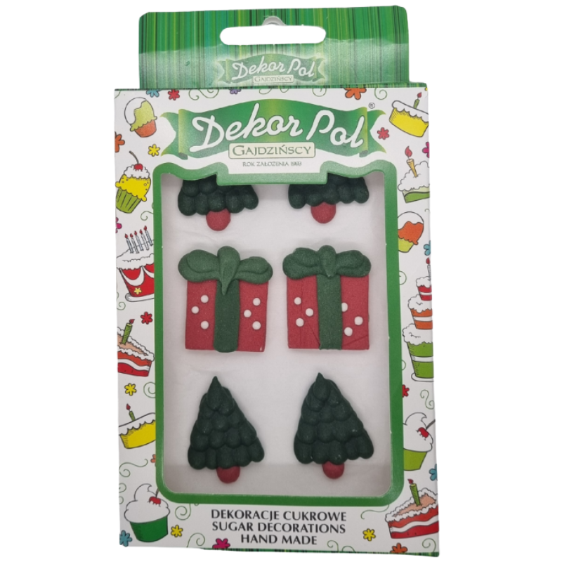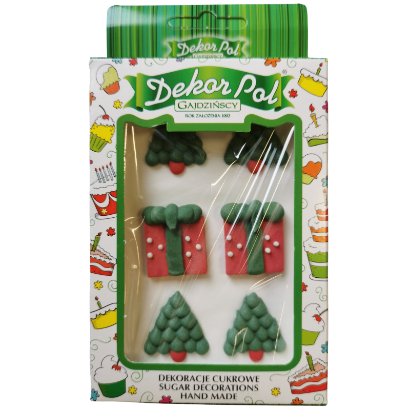 Gotowy do użycia zestaw dekoracji cukrowych na święta Bożego Narodzenia. Wypukłe dekoracje do ozdabiania świątecznych wypieków i deserów.