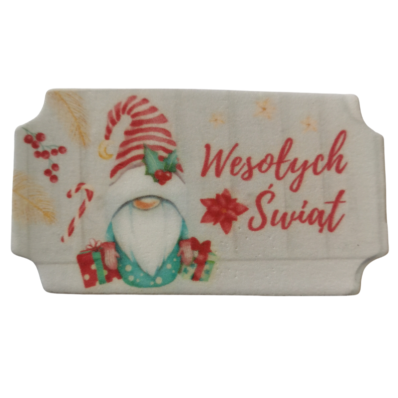 Świąteczna tabliczka cukrowa z życzeniami. Gotowa do użycia dekoracja cukrowa na święta Bożego Narodzenia. Poziome tabliczki do ozdabiania świątecznych wypieków i deserów.