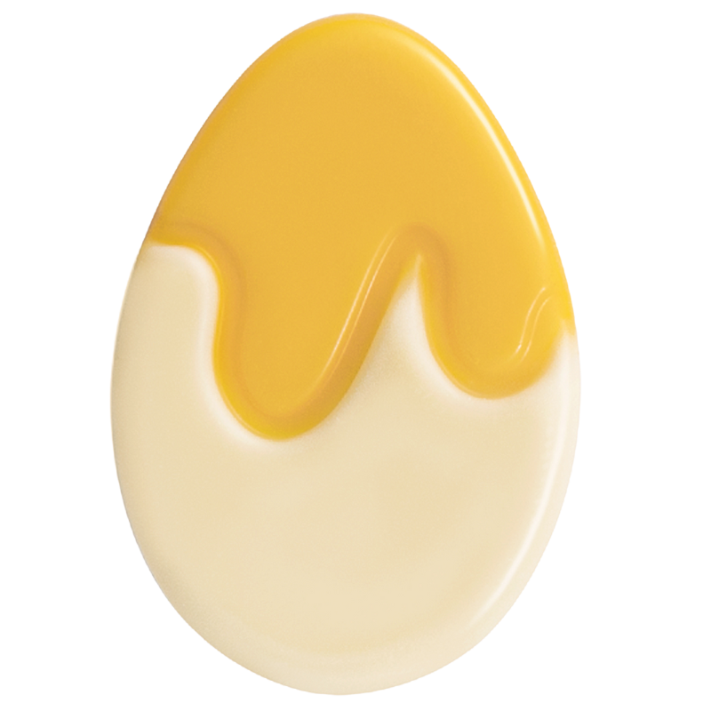 Wielkanocna dekoracja w kształcie pisklaka w skorupce wykonana z barwionej białej czekolady. Idealny sposób na szybką i efektowną dekorację Twoich świątecznych wyrobów. Doskonale sprawdzi się zarówno w profesjonalnej jak i domowej pracowni cukierniczej.