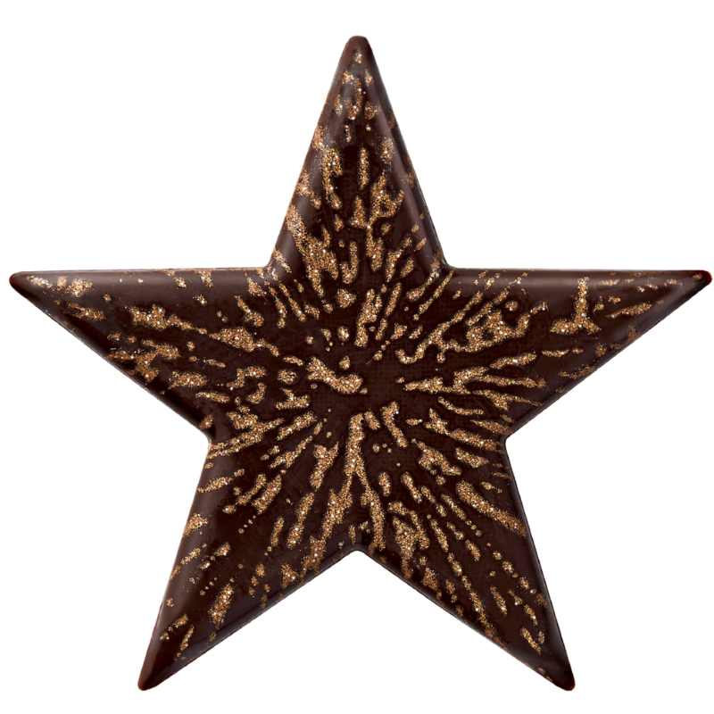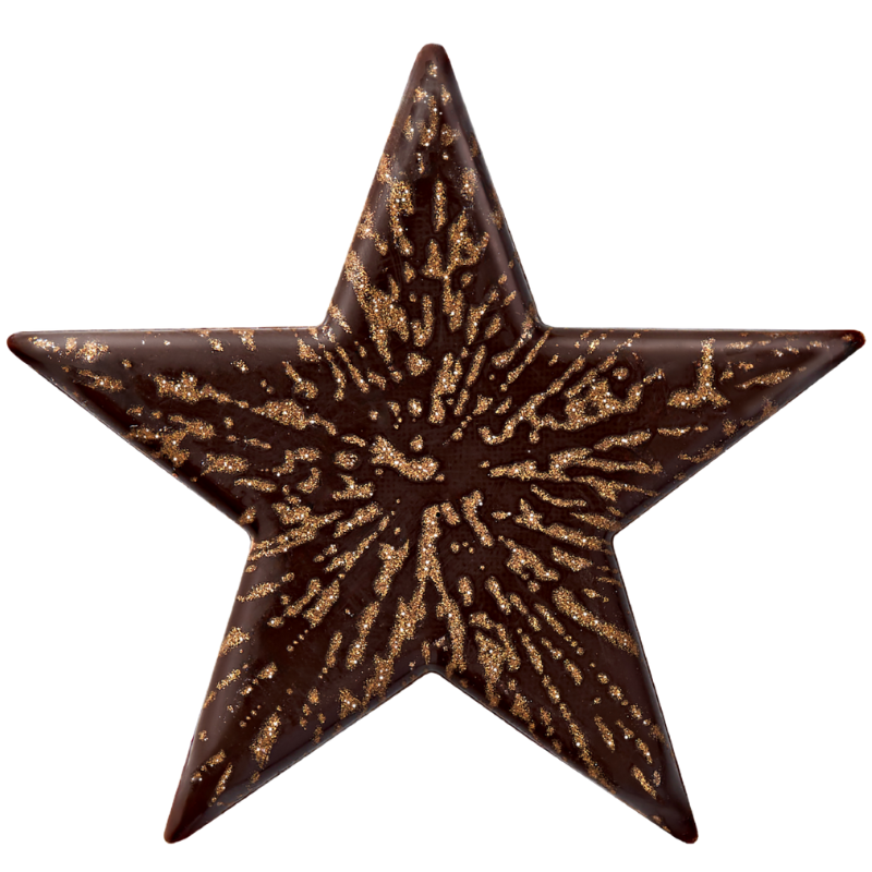 Szczegóły i charakterystyka produktu, złote gwiazdki z ciemnej czekolady: