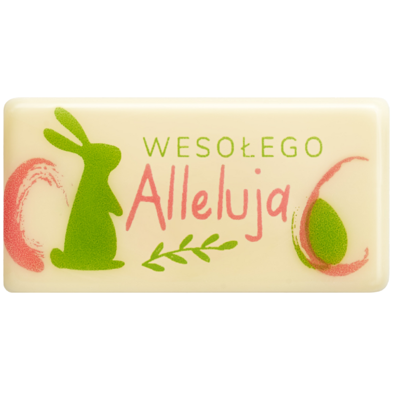 op. 318 szt. Wesołego Alleluja - 33757 Barbara Decor - plakietka z białej czekolady z wielkanocnym nadrukiem - wym. 20 x 40 mm