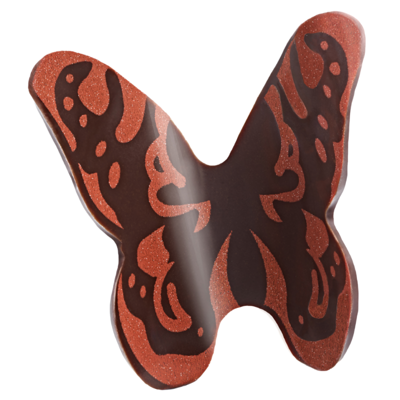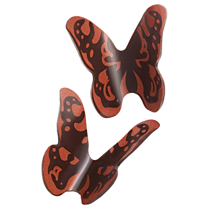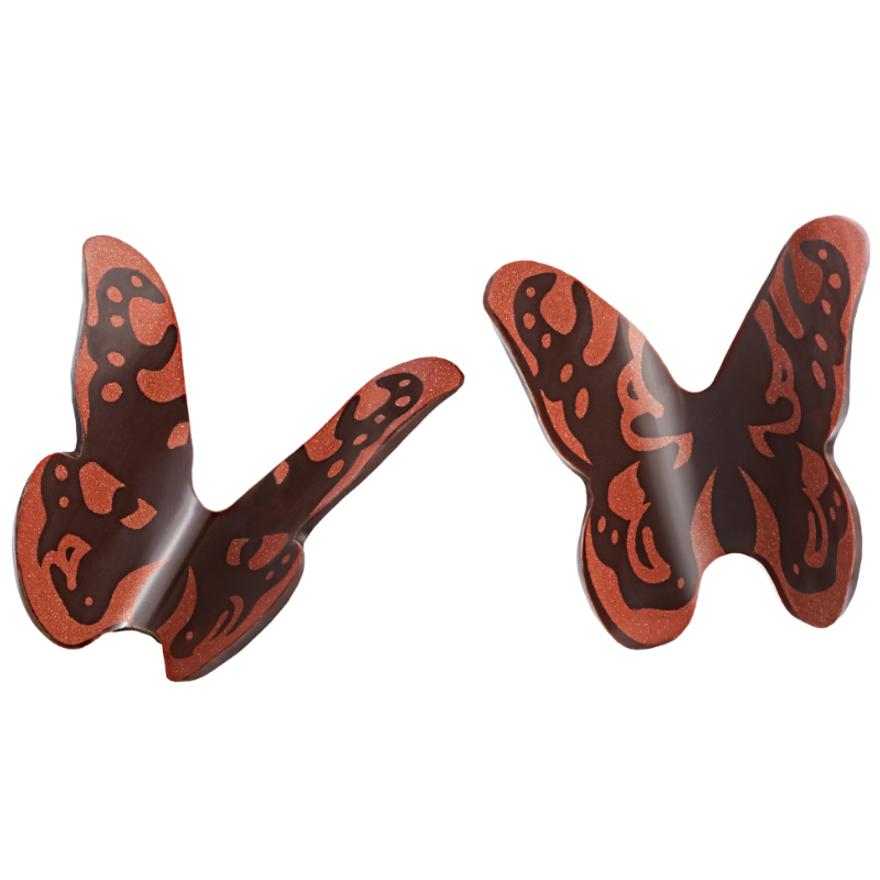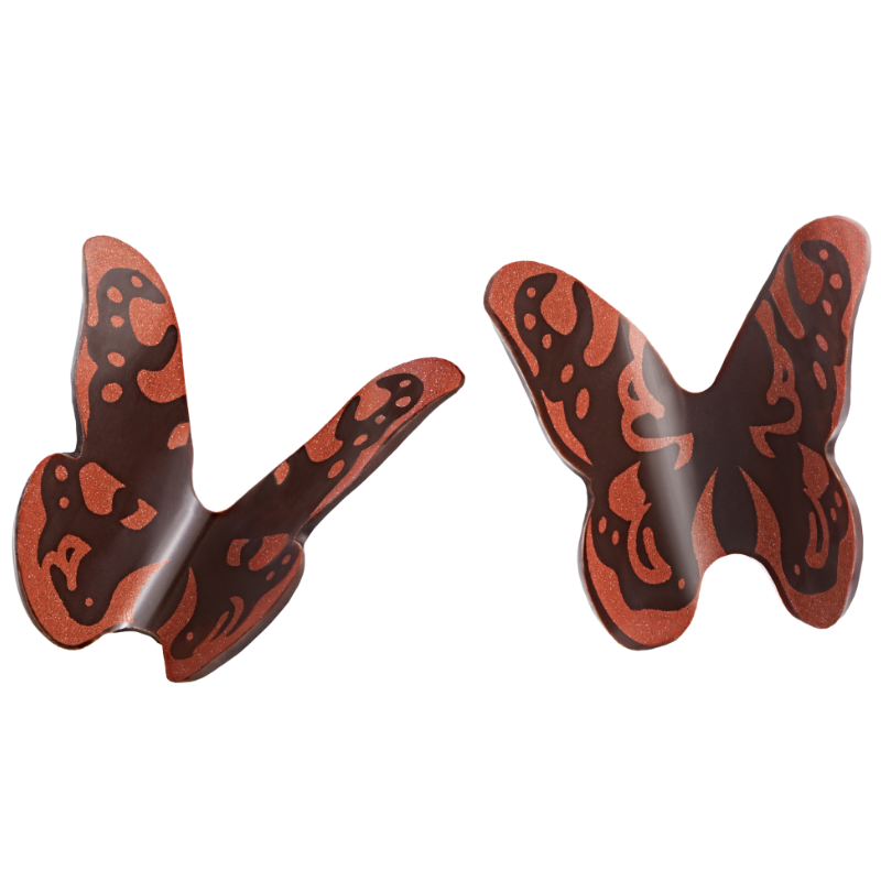 Trójwymiarowe motyle z ciemnej czekolady do subtelnych dekoracji tortów i monoporcji. Gotowa dekoracja czekoladowa do letnich deserów. Czekoladowe motyle do tworzenia słodkich kreacji pełnych słonecznego uroku!