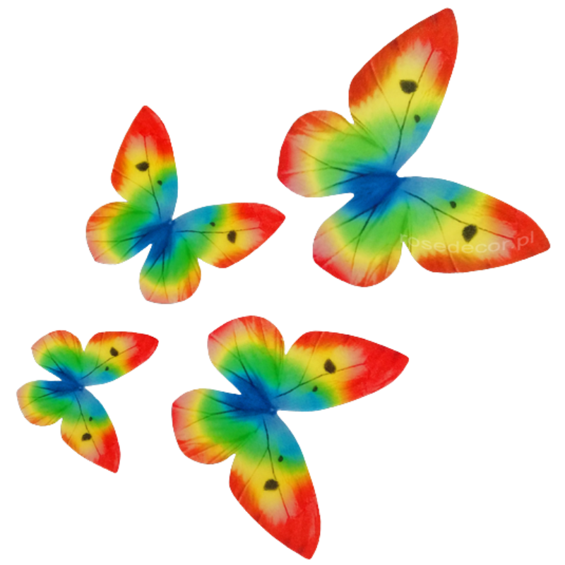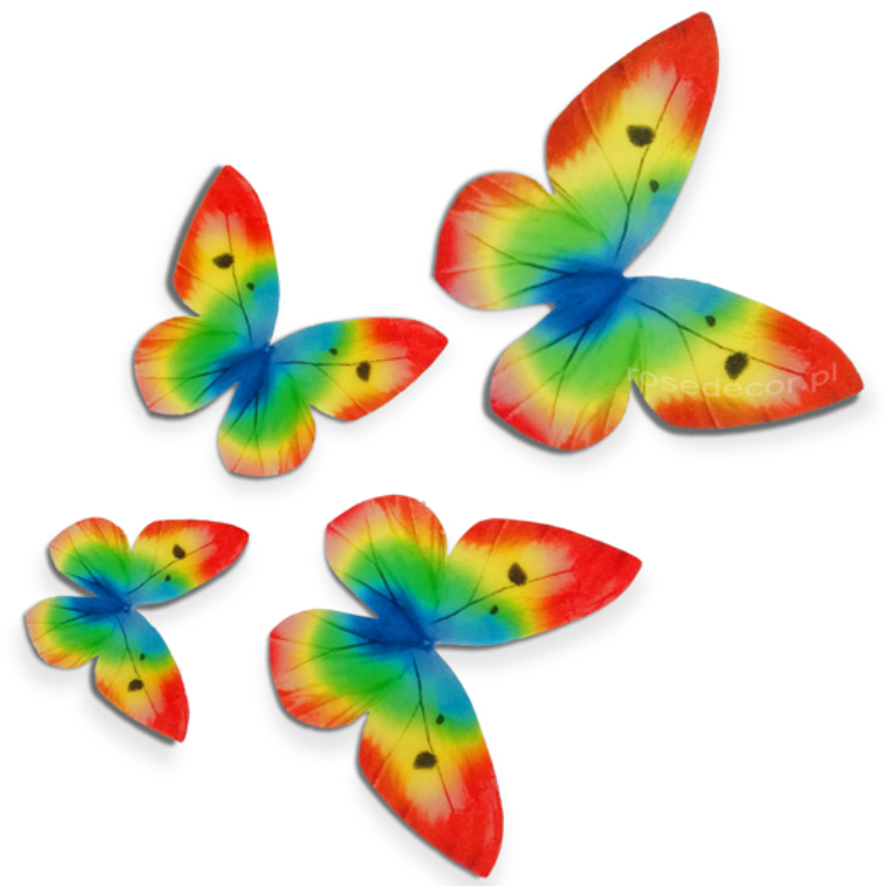 w kolorach tęczy (niebieski, zielony, żółty, czerwony),