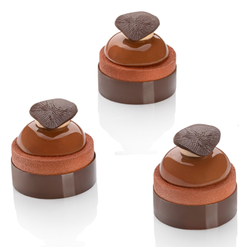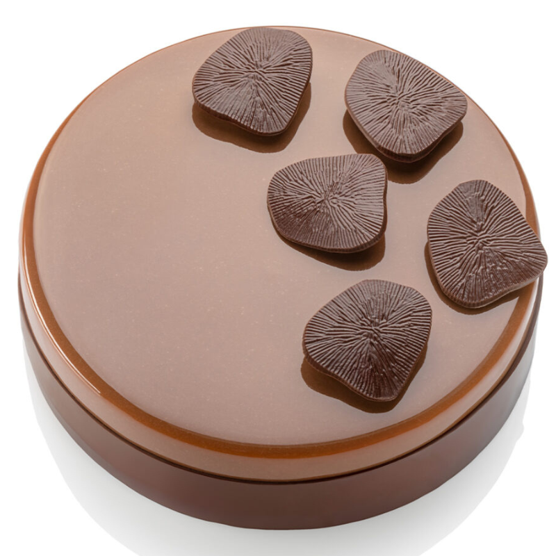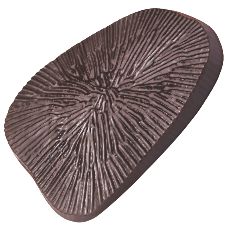 Oryginalna dekoracja z ciemnej czekolady inspirowana epoką paleolitu. Idealna do dekoracji tortów i deserów w kolorach natury. Nieregularny kształt przypominający kamienie ze strukturalnym wzorem, pobudza wyobraźnię.