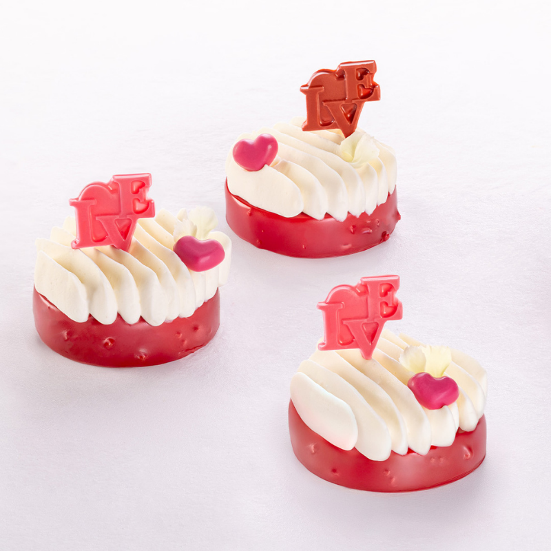 Seria pobudzających kreatywność dekoracji wykonanych z barwionej czekolady. Walentynkowa tematyka, która doskonale sprawdzi się na romantycznych wypiekach i deserach. Dekoracje wykonane są z wysokiej jakości czekolady, która wytwarzana jest według dopracowanej i niezmiennej od lat receptury. Czekolada barwiona jest wyłącznie sprawdzonymi barwnikami, które są w pełni bezpieczne do spożycia.