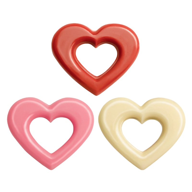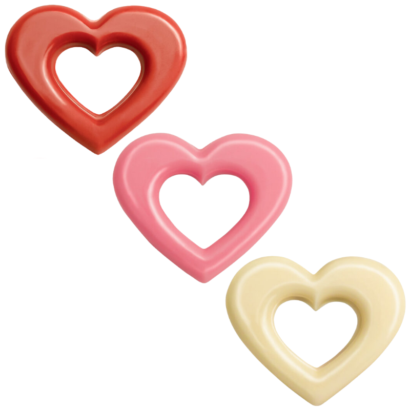Seria pobudzających kreatywność dekoracji wykonanych z barwionej czekolady. Walentynkowa tematyka, która doskonale sprawdzi się na romantycznych wypiekach i deserach. Dekoracje wykonane są z wysokiej jakości czekolady, która wytwarzana jest według dopracowanej i niezmiennej od lat receptury. Czekolada barwiona jest wyłącznie sprawdzonymi barwnikami, które są w pełni bezpieczne do spożycia.
