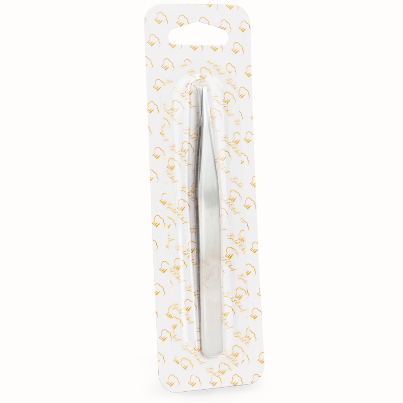 Niezbędny element wyposażenia w każdej nowoczesnej kuchni i cukierni. Profilowana pęseta ze stali nierdzewnej, doskonała do dekorowania potraw, deserów i wypieków.