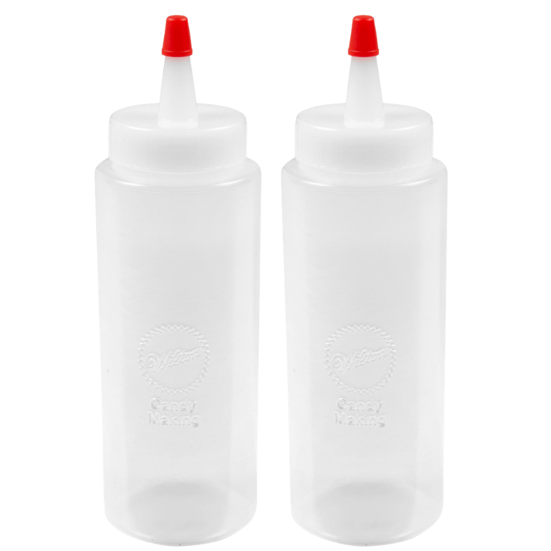 Zestaw bardzo praktycznych butelek do precyzyjnego dozowania płynnych przypraw, sosów i polew. Wykonane z elastycznego tworzywa przeznaczonego do kontaktu z żywnością. Idealne do dekorowania pierniczków i nasączania biszkoptów.