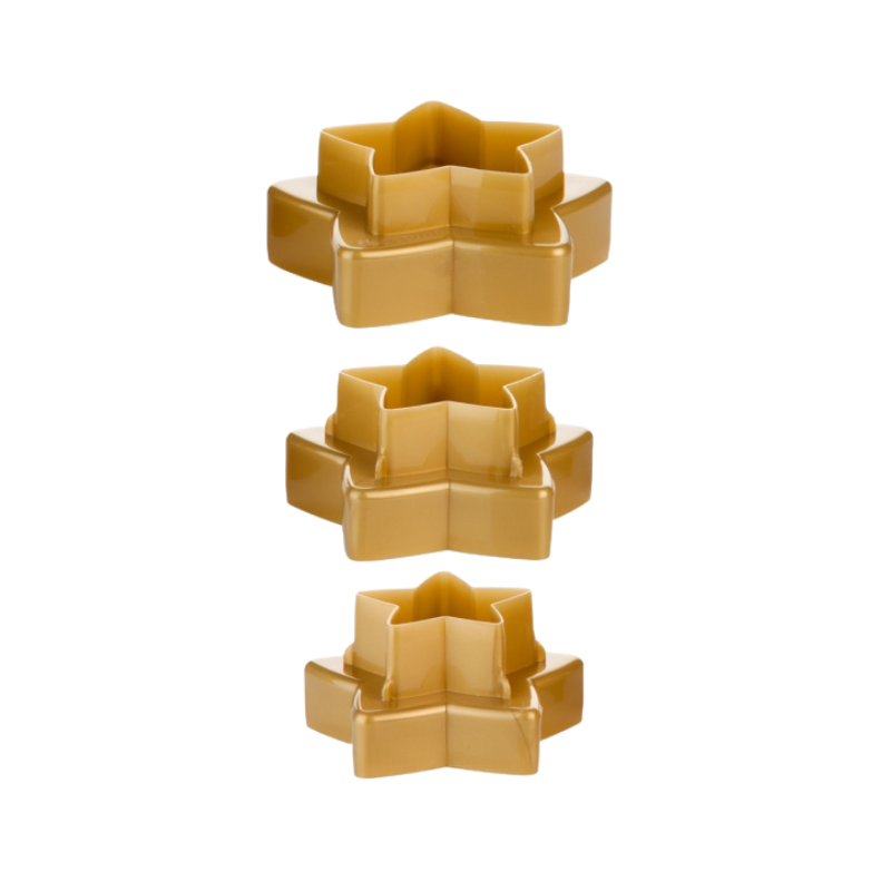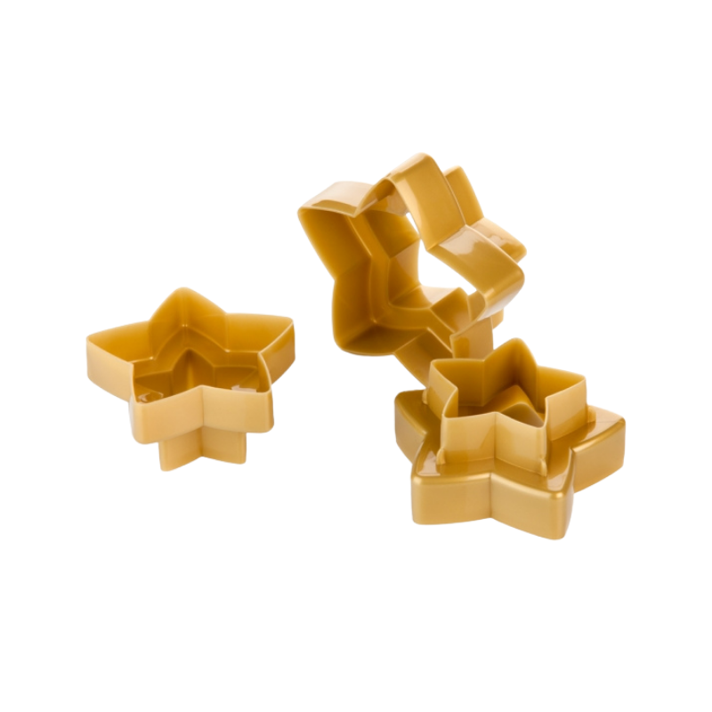 Zestaw foremek gwiazdki składa się z trzech dwustronnych elementów o średnicy od 5 do 10 cm.