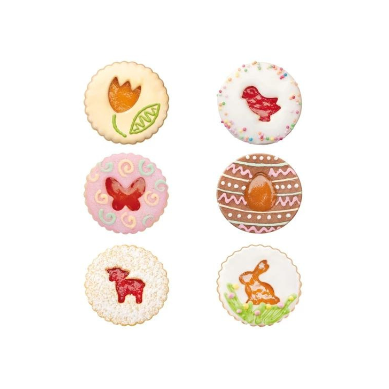 Seria foremek do wykrawania ciasteczek i ozdób przygotowana specjalnie z myślą o domowych wypiekach i najmłodszych cukiernikach. Zestaw do wypieku wielkanocnych kruchych ciasteczek z nadzieniem i dekoracyjnym wzorem.