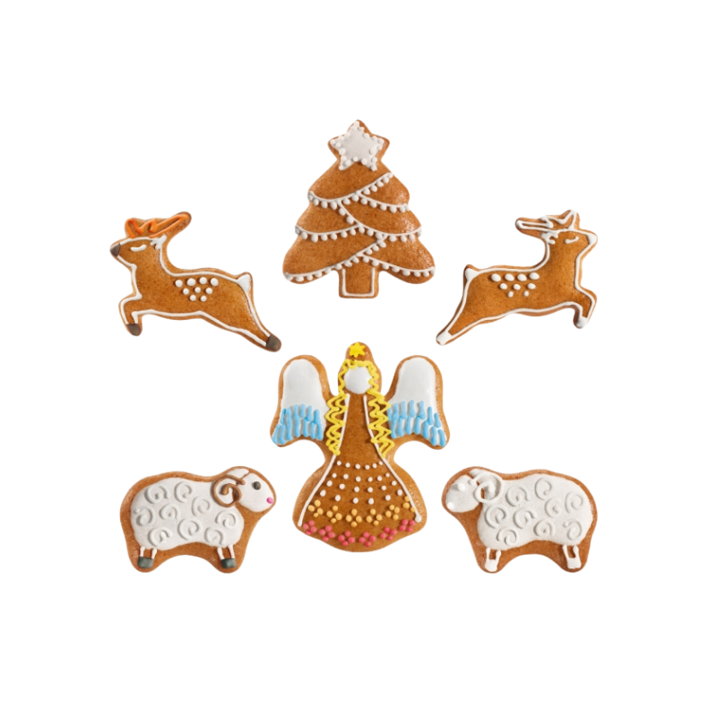 Umożliwia wyrojenie za jednym razem 6 bożonarodzeniowych ciasteczek w kształcie: