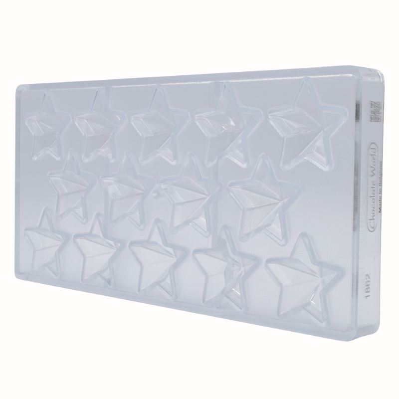Formy do pracy z czekoladą wykonane z poliwęglanu charakteryzują się wyjątkową trwałością i wytrzymałością. Są odporne na uszkodzenia mechaniczne oraz działanie zarówno wysokich jak i niskich temperatur. Materiał, z którego wykonane są formy zapewnia idealnie błyszczącą powierzchnię wyrobów czekoladowych oraz zmniejsza ryzyko wystąpienia matowych plam. Zapewnia również równomierne rozprowadzanie ciepła, co ma ogromne znaczenie podczas pracy z czekoladą. Dodatkową zaletą form wykonanych z poliwęglanu jest ich transparentna barwa, która pozwala na kontrolę podczas formowania kształtów. Ponadto materiał pod wpływem zmian temperatury kurczy się wolniej niż czekolada, co znacznie ułatwia proces wyjmowania kształtów z formy. Przed wlaniem czekolady, formę należy lekko podgrzać, co zapobiega zbyt dużej różnicy temperatur i tym samym zmętnieniu czekolady. Formy należy napełniać jedynie odpowiednio zatemperowaną czekoladą.