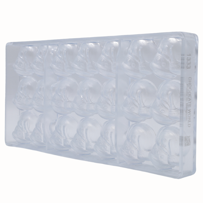 Formy do pracy z czekoladą wykonane z poliwęglanu charakteryzują się wyjątkową trwałością i wytrzymałością. Są odporne na uszkodzenia mechaniczne oraz działanie zarówno wysokich jak i niskich temperatur. Materiał, z którego wykonane są formy zapewnia idealnie błyszczącą powierzchnię wyrobów czekoladowych oraz zmniejsza ryzyko wystąpienia matowych plam. Zapewnia również równomierne rozprowadzanie ciepła, co ma ogromne znaczenie podczas pracy z czekoladą. Dodatkową zaletą form wykonanych z poliwęglanu jest ich transparentna barwa, która pozwala na kontrolę podczas formowania kształtów. Ponadto materiał pod wpływem zmian temperatury kurczy się wolniej niż czekolada, co znacznie ułatwia proces wyjmowania kształtów z formy. Przed wlaniem czekolady, formę należy lekko podgrzać, co zapobiega zbyt dużej różnicy temperatur i tym samym zmętnieniu czekolady. Formy należy napełniać jedynie odpowiednio zatemperowaną czekoladą.