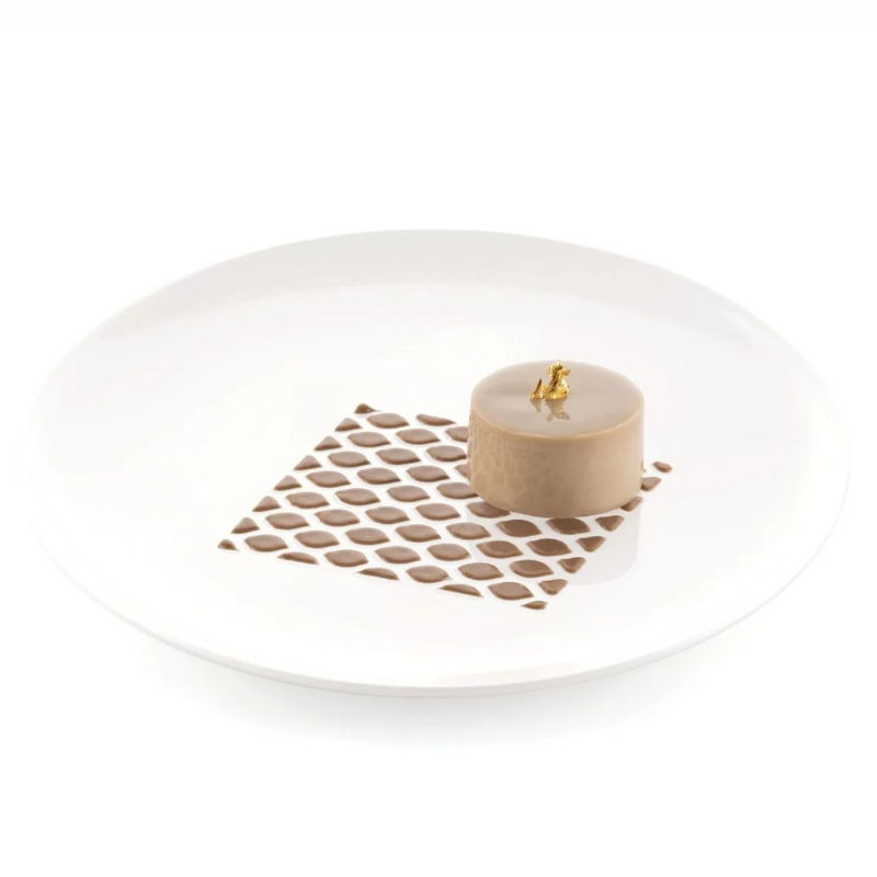Szablon przeznaczony do szybkiego tworzenia perfekcyjnych dekoracji na talerzu. Pozwala na efektowną prezentację deserów, przystawek i potraw. Wykonany z cienkiego i elastycznego silikonu. W zestawie znajdują się 2 sztuki silikonowych szablonów.