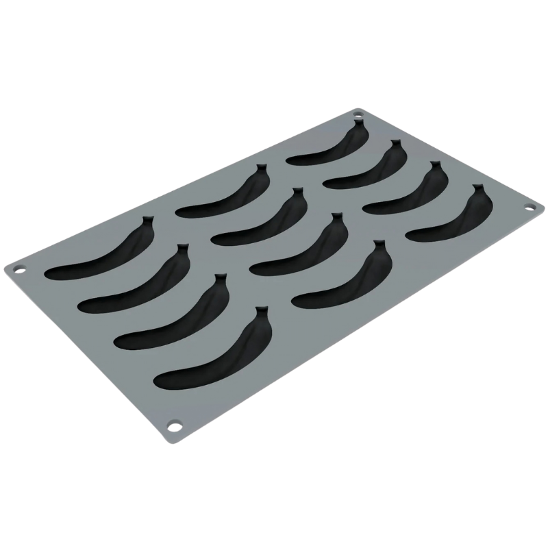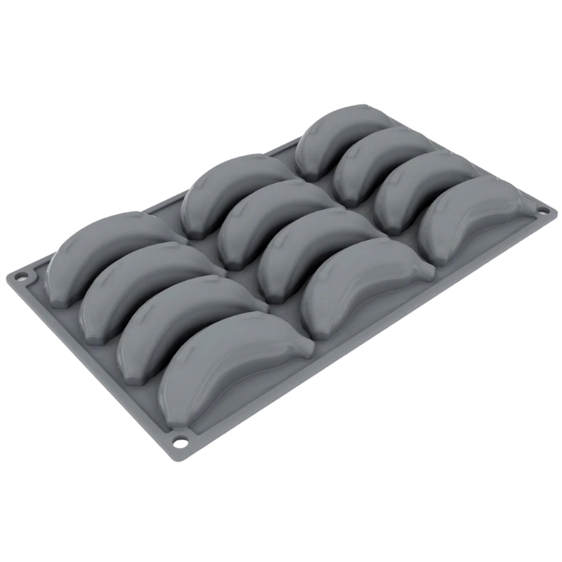 GG035 Baby Banana - forma silikonowa do deserów i dekoracji - banan - dł. 90 x szer. 40.5 x wys. 25 mm / poj. 40 ml x 12 porcji