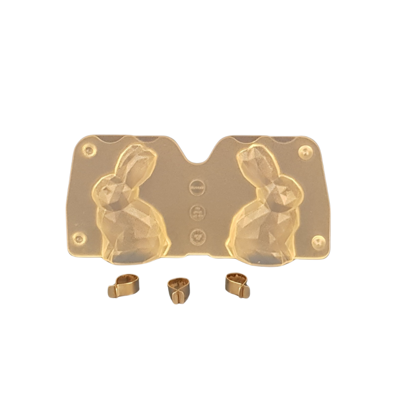 To forma z poliwęglanu do tworzenia figurek czekoladowych w kształcie królika o diamentowej strukturze.