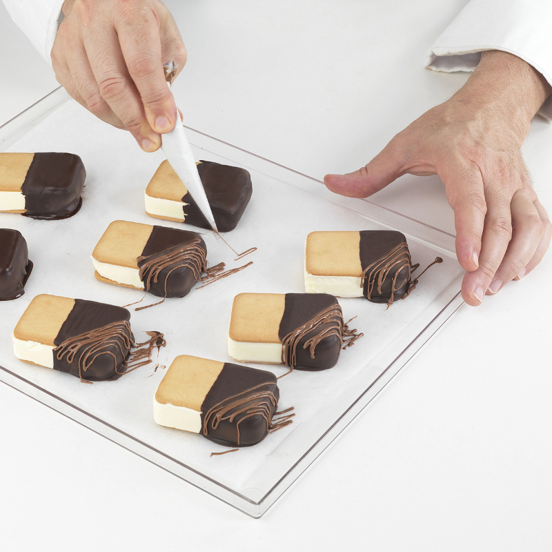 Formy silikonowe są uniwersalne w zastosowaniu nadają się zarówno do pieczenia jak i do mrożenia. Pozwalają na tworzenie lodów i deserów mrożonych, monoporcji i deserów musowych oraz słodkich i wytrawnych wypieków. Główne zastosowania: kanapki lodowe, semifreddo i desery mrożone, musy i warstwowe monoporcje, ciasta i ciasteczka, wyroby czekoladowe, galaretki, żelki i lizaki, zimne przekąski i potrawy formowane, wytrwane wypieki. Zestaw form do kanapek lodowych daje wiele możliwości kreatywnego wykorzystania!