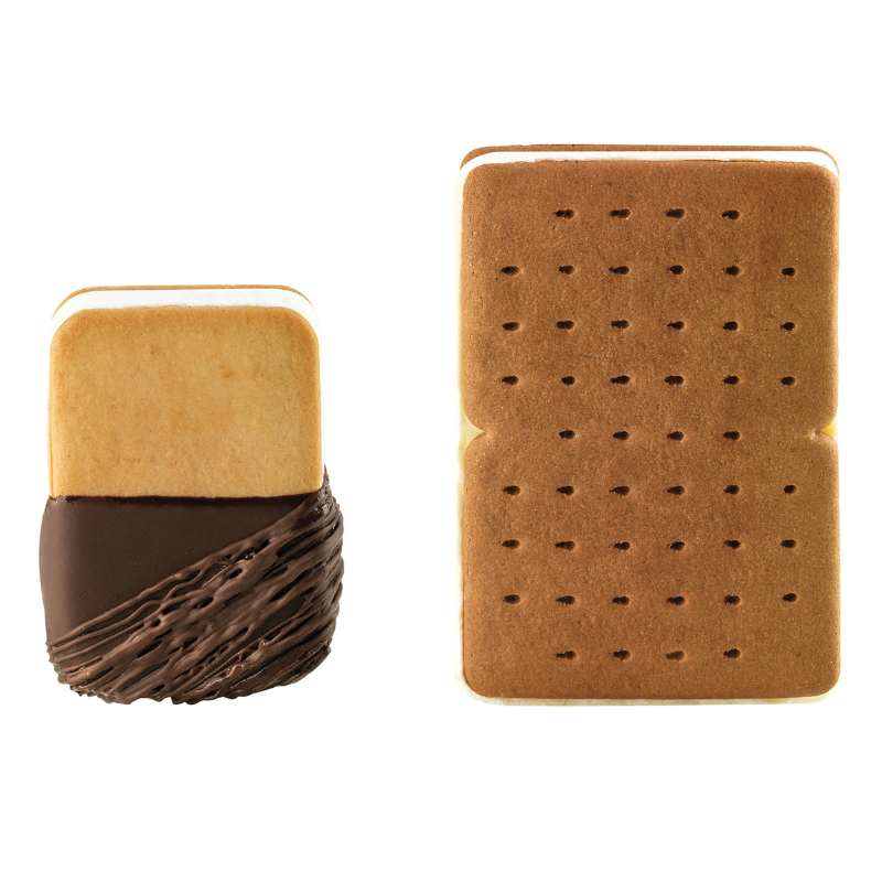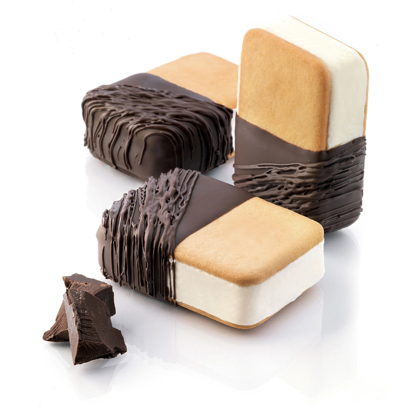 Kompletny zestaw do tworzenia kanapek lodowych. W zestawie znajdują się dwie formy silikonowe przeznaczone do formowania lodów, deserów i wypieków oraz jedna prostokątna taca do mrożenia. Uniwersalny zestaw do formowania mrożonych i pieczonych deserów.