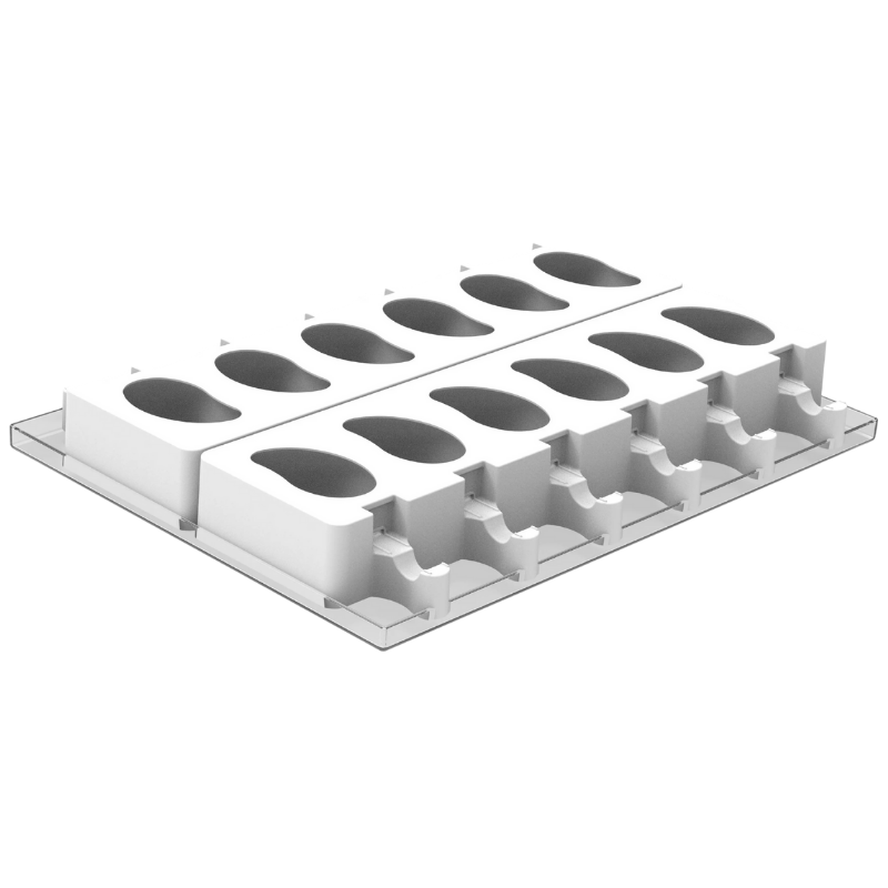 - prostokątna taca z tworzywa przeznaczona do mrożenia lodów oraz deserów w formach silikonowych,