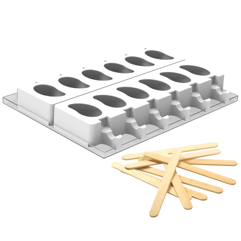 2 x forma silikonowa + 1 x taca do mrożenia + 50 x drewniane patyczki |