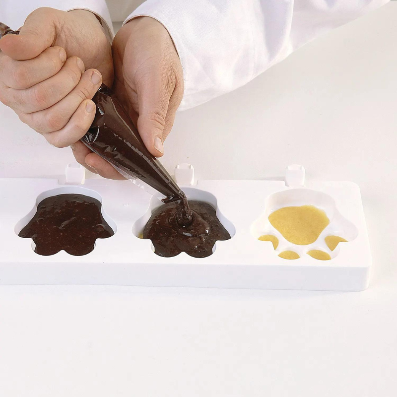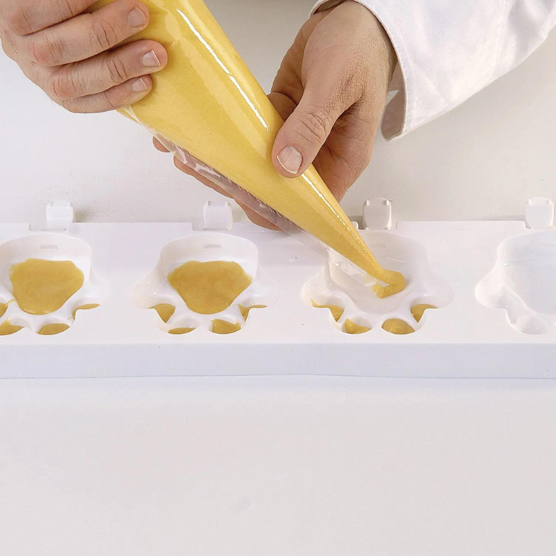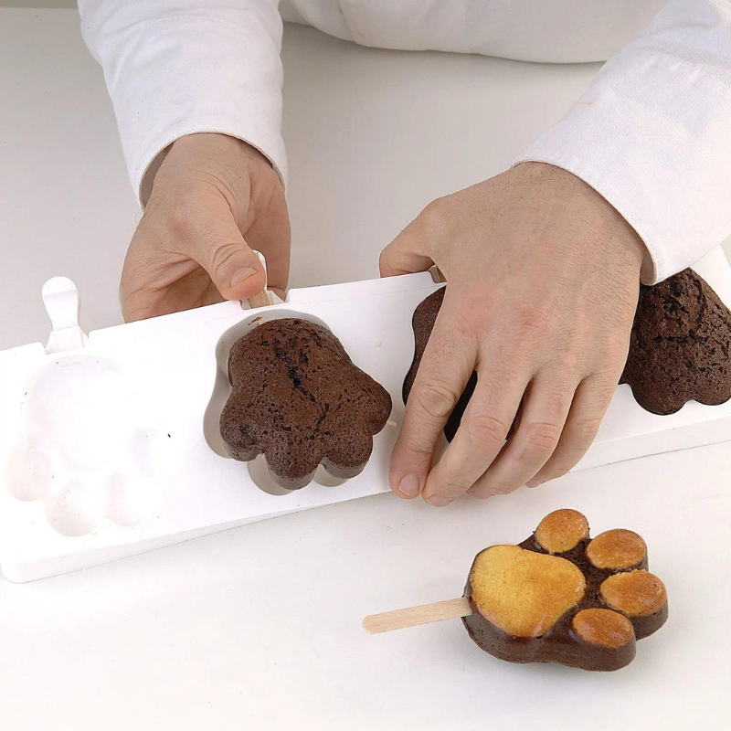 Uniwersalny zestaw do formowania mrożonych i pieczonych deserów na patyku! Forma silikonowa do nowoczesnych ciastek i deserów na patyku w kształcie łapki! Idealna do tworzenia wyjątkowych słodyczy dla najmłodszych smakoszy!