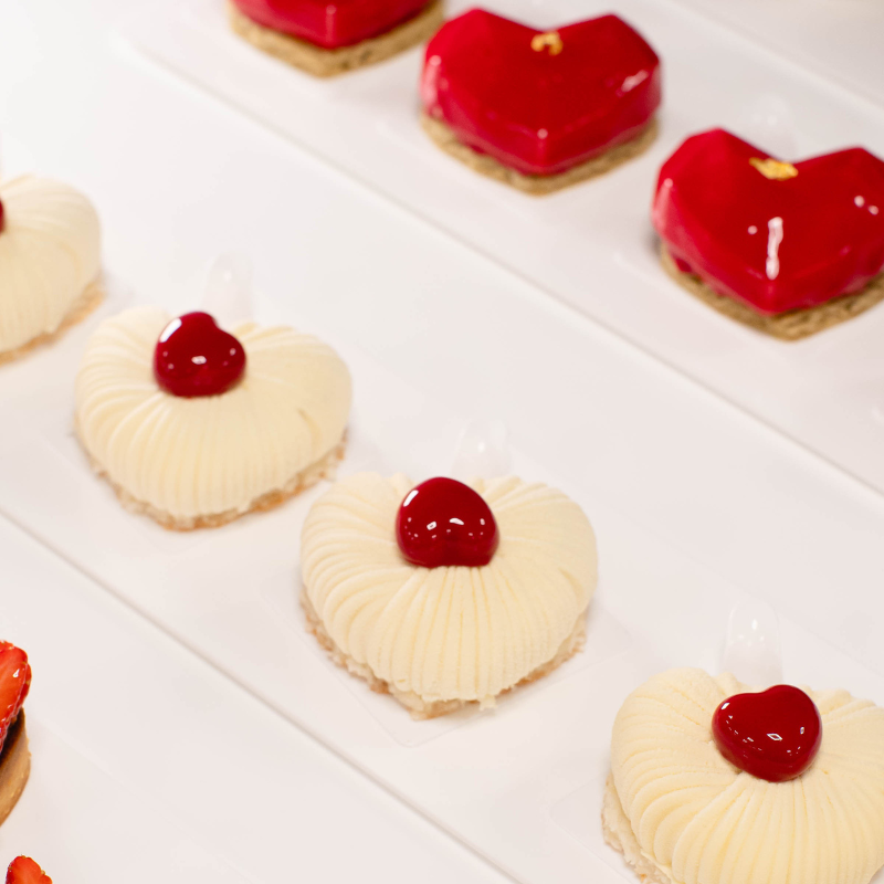 Cupido 30, to zestaw do walentynkowych mini deserów w kształcie serca. W zestawie znajduje się forma silikonowa oraz dwustronny wykrojnik. Dopracowany w najdrobniejszych szczegółach kształt pozwala na tworzenie zaskakujących Walentynkowych kreacji! Forma o wymiarach dł. 45 mm x szer. 44 mm x wys. 24 mm i pojemności 30 ml. Zestaw pozwala na jednorazowe przygotowanie 15 mini deserów.