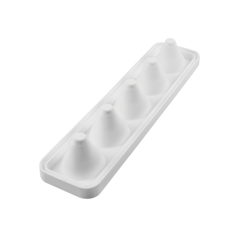 Platynowy płynny silikon charakteryzuje się odpowiednią elastycznością, która zapewnia doskonałe odwzorowanie kształtu. Pozwala na bezproblemowe wyjmowanie wyrobów z formy. Jest odporny na działanie niskich temperatur i całkowicie bezpieczny w kontakcie z żywnością. Zapewnia zachowanie właściwej higieny dzięki możliwości mycia w zmywarce. Podczas pracy z formami silikonowymi nie należy stosować ostrych narzędzi kuchennych, zalecane się stosowanie przyborów z tworzywa, drewna oraz silikonu. Znajdujący się w zestawie wspornik z tworzywa również wykazuje odporność na działanie niskich temperatur ( do (-) 60°C) oraz nadaje się do mycia w zmywarce.