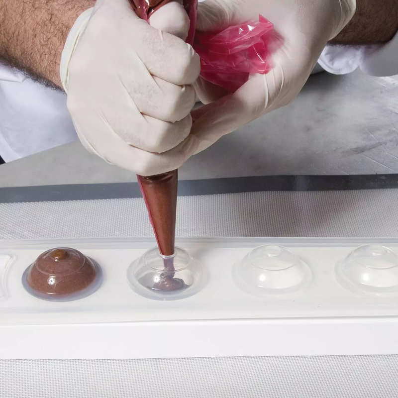 Formy zostały wykonane z najwyższej jakości płynnego silikonu platynowego, który charakteryzuje się znaczną elastycznością oraz stabilnością termiczną, zapewniając wygodę oraz wydajność pracy. Formy przeznaczone są do chłodzenia, mrożenia oraz dają możliwość szokowego zamrażania. Wykazują odporność na działanie temperatur do (-) 60°C oraz bezpiecznego mycia w zmywarce.