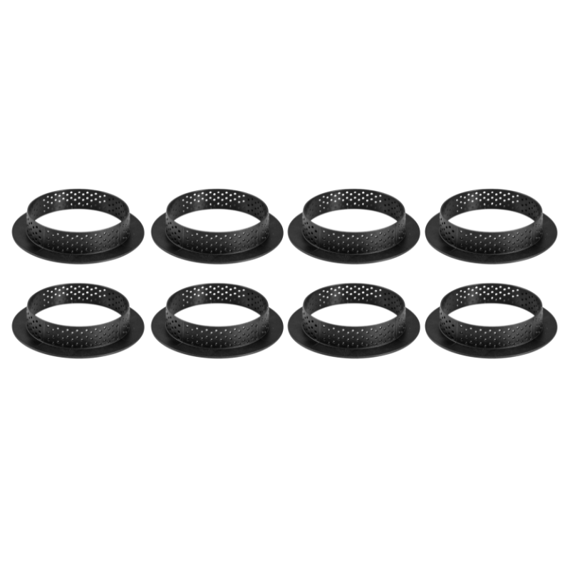 Zestaw do nowoczesnych tart - perforowane ranty do wypieku ciasta kruchego + forma do dekoracji. Forma doskonale sprawdzi się również do monoporcji oraz mrożonych deserów.