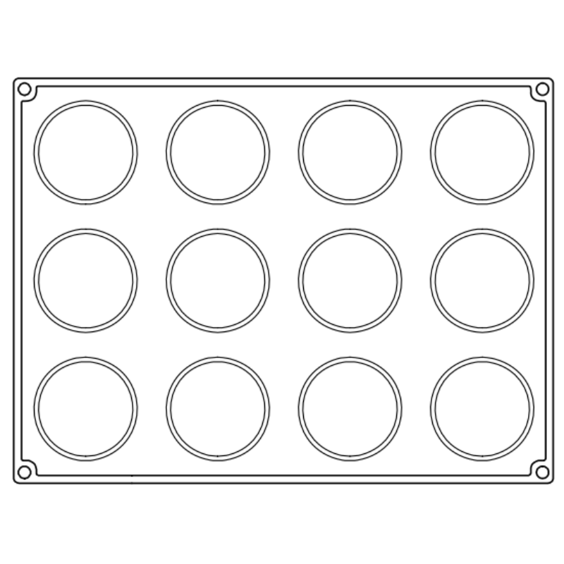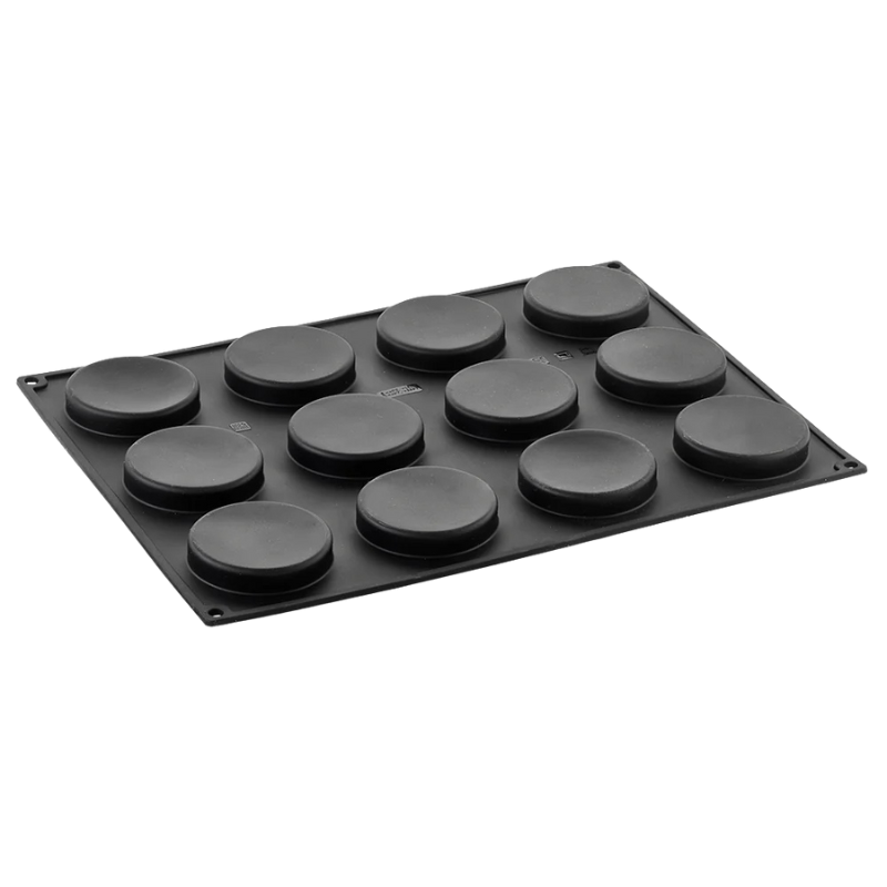 PX4334S Round Pavoni - zestaw forma silikonowa z wykrojnikiem - śr. 74 x wys. 15 mm / poj. 64 ml x 12 porcji