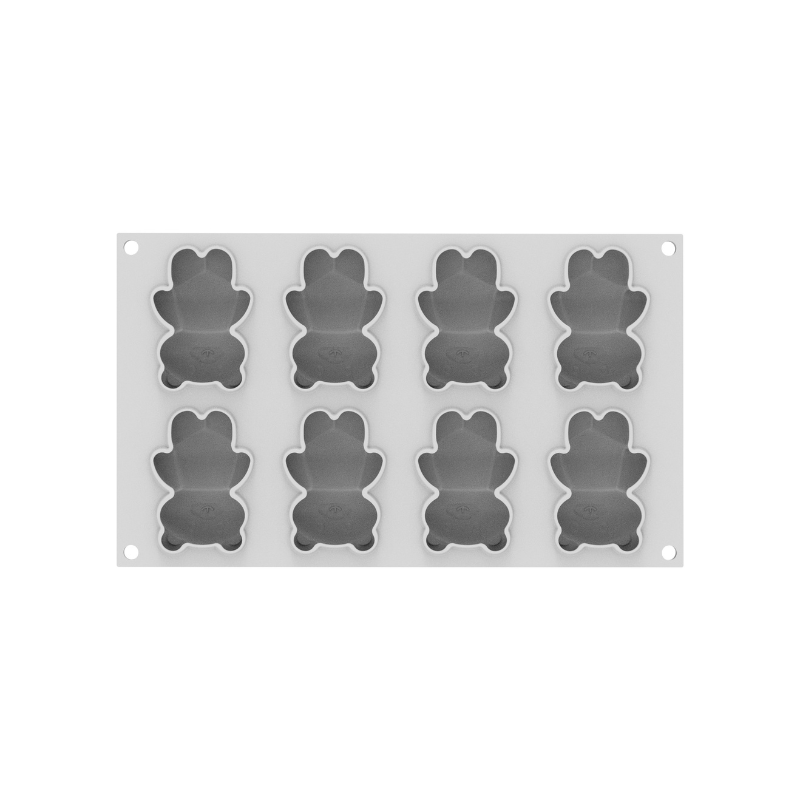 Teddy Bear 68, to profesjonalna forma silikonowa do uroczych monoporcji w kształcie misia. Forma pozwala na przygotowanie słodyczy o perfekcyjnym kształcie. Inspirowana "guimauve ourson", słynnymi piankowymi misiami w czekoladzie. Stworzona we współpracy z cukierniczką Eunji Lee. Doskonale sprawdzi się do zarówno do wypieków jak i mrożonych deserów dla najmłodszych smakoszy. Forma pozwala na przygotowanie 8 misiowych monoporcji o wymiarach dł. 79 mm x szer. 56 mm x wys. 27 mm i pojemności 68 ml. Szczegółowe informacje znajdziesz w tabeli. Nowoczesne desery o realistycznym kształcie makaroników doskonale zaprezentujesz na specjalnych podkładkach do monoporcji. Wszystkie formy z serii mają szerokość 175 mm oraz długość 300 mm. Jednakowe wymiary ułatwiają przechowywanie oraz użytkowanie form.