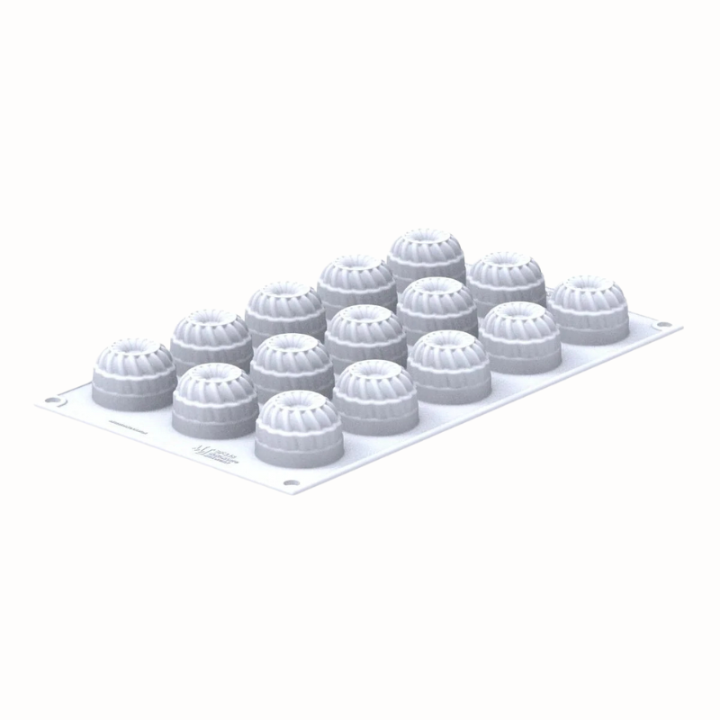 Forma silikonowa do tworzenia tradycyjnych i nowoczesnych wypieków oraz deserów mrożonych. Uniwersalne zastosowanie i łatwość użycia gwarantują zawsze doskonały efekt, niezależnie od tego jaką formę deseru przygotujesz. Forma na 15 dekoracyjnych porcji o średnicy 40 mm, wysokości 27 mm i pojemności 27 ml.