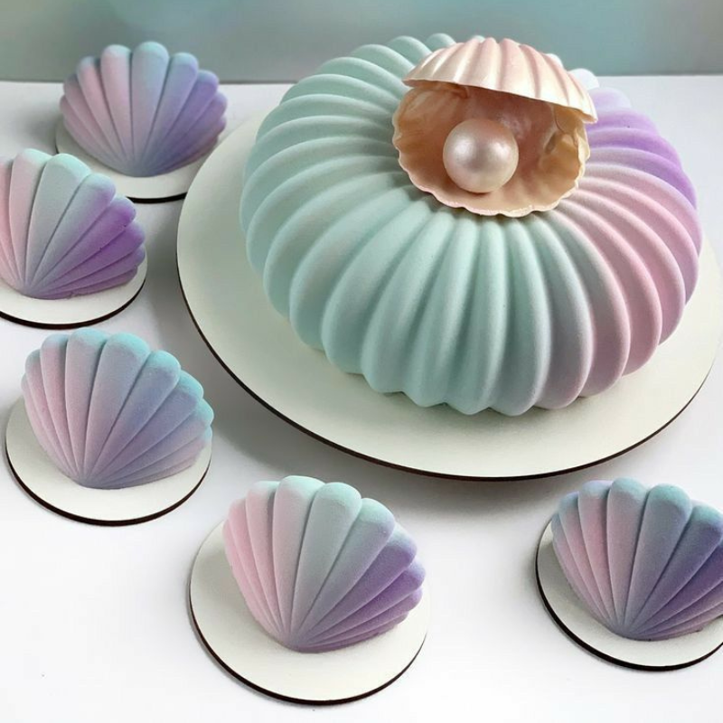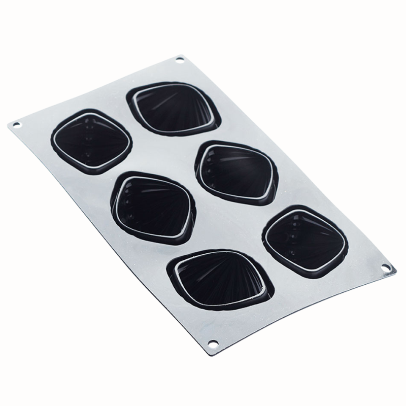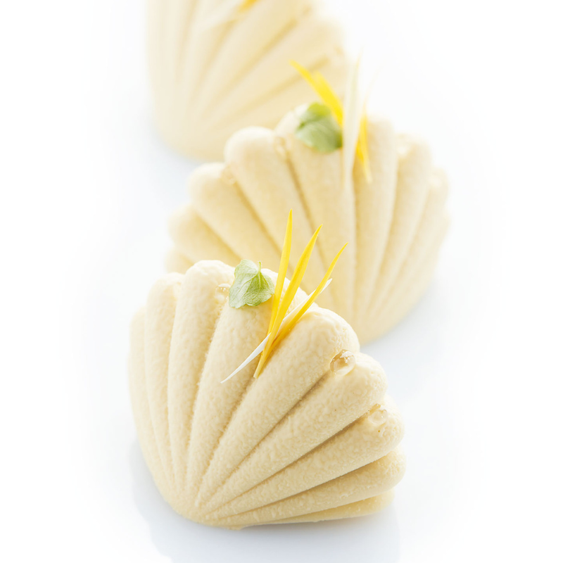 Forma silikonowa do deserów w kształcie muszli. Profesjonalna forma silikonowa stworzona we współpracy z Frank Haasnoot. Forma pozwala na jednorazowe przygotowanie 6 dekoracyjnych porcji o wymiarach: dł. 79 mm x szer. 59 mm x wys. 54.5 mm i pojemności 100 ml.