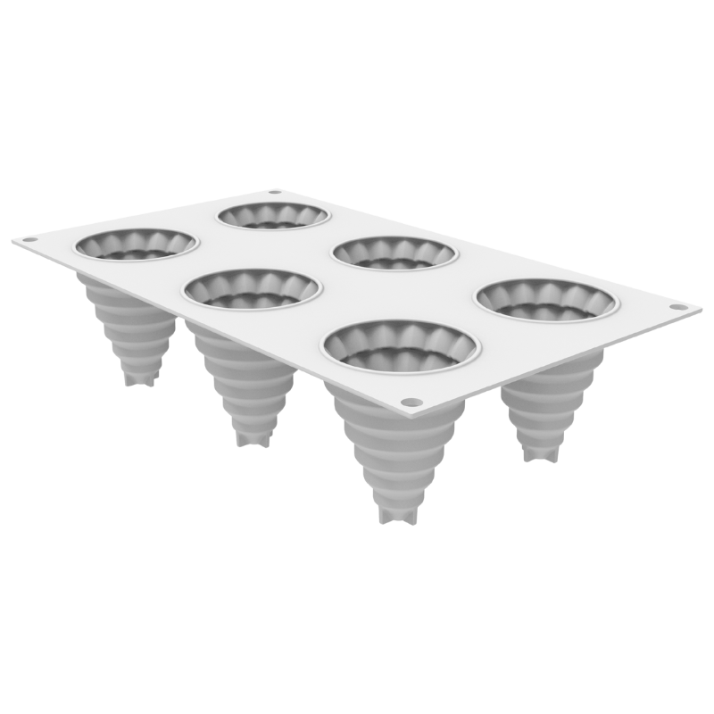 Twister od Pavoni Italia, forma silikonowa do nowoczesnych deserów i monoporcji. Forma pozwala na jednorazowe przygotowanie 12 dekoracyjnych porcji o wymiarach: śr. 66 mm x wys. 35 mm i pojemności 88 ml.